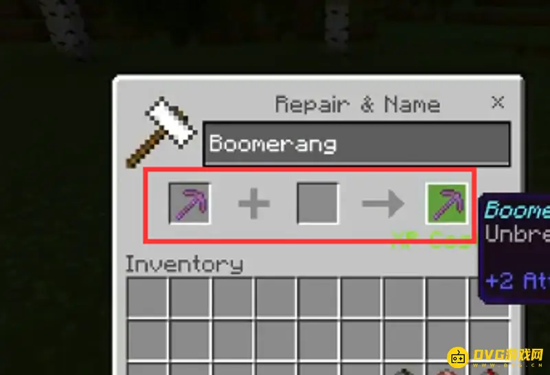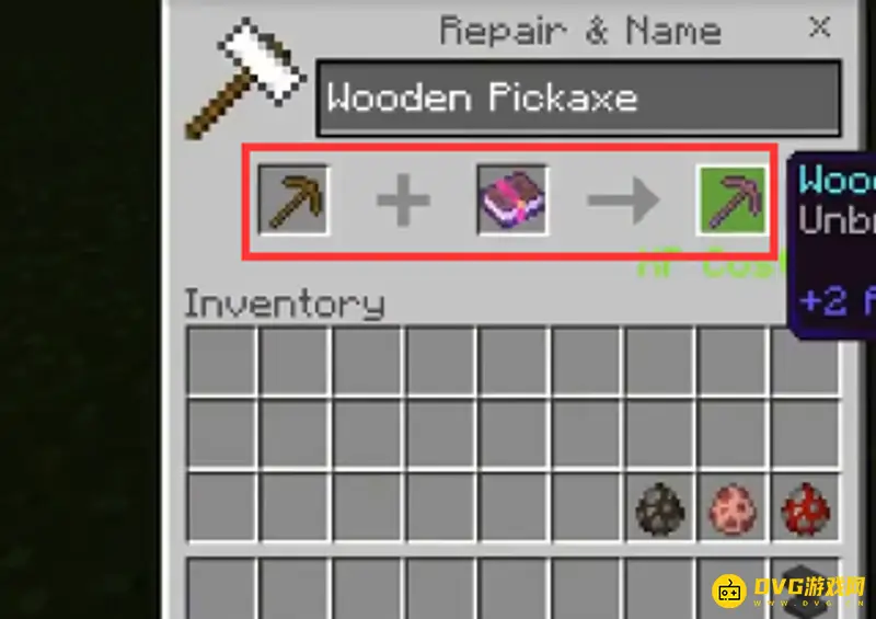1、选择一个镐子和一本紫色的书,合成一把紫色的镐子。