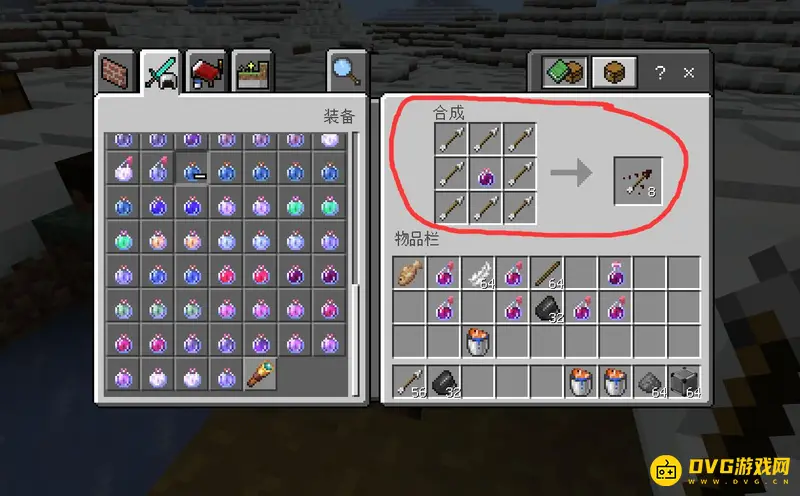 用滞留伤害药水和八根箭就可以制作瞬间伤害箭了。