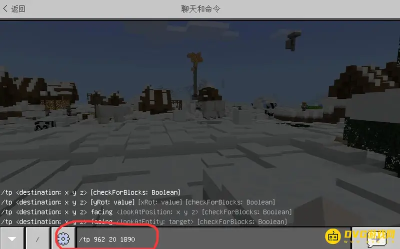 3,然后在聊天框里输入指令传送到这个坐标。
