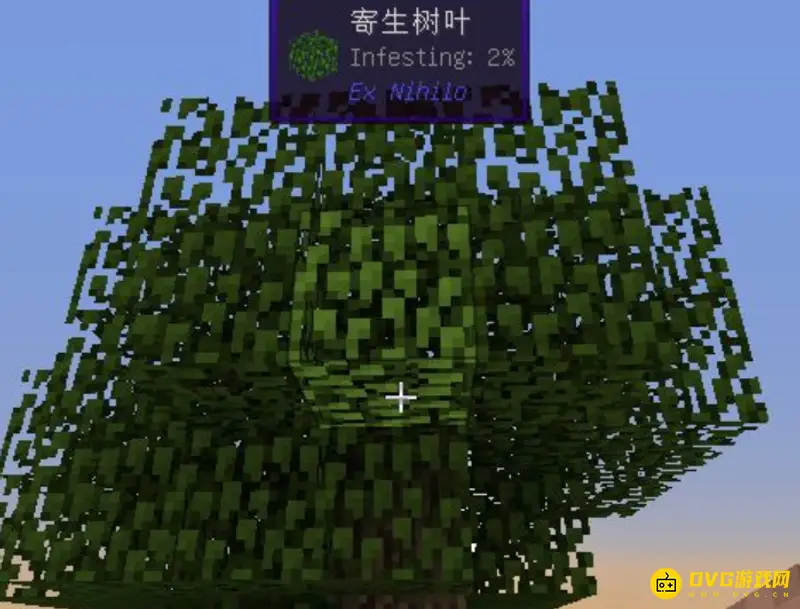 3.接着获得蚕后,另找一棵树,拿着蚕对寄生树叶右键,如图所示。