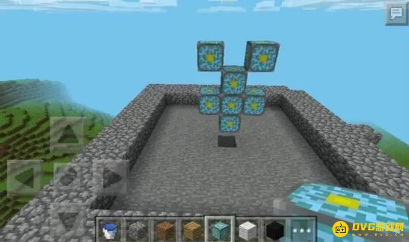5、然后四个角放上水(注意开始一定边长9)。这样即可完工了。