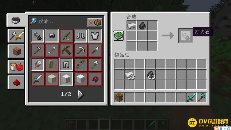 将燧石和铁锭放置在工作台的合成页面,即可获得打火石:
