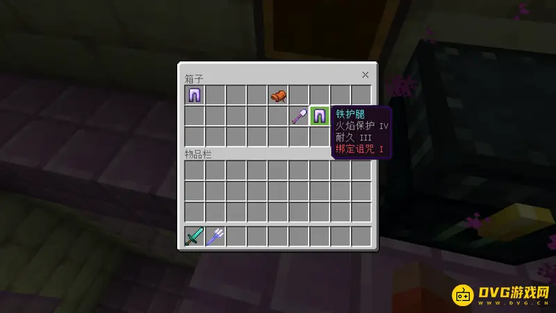 3.注意:该附魔效果属于负面效果,尽量不要穿戴绑定诅咒的防具,若有该附魔效果的附魔书,也尽量不要用来给防具附魔。该附魔自然生成十分罕见,无法从附魔台中获取。