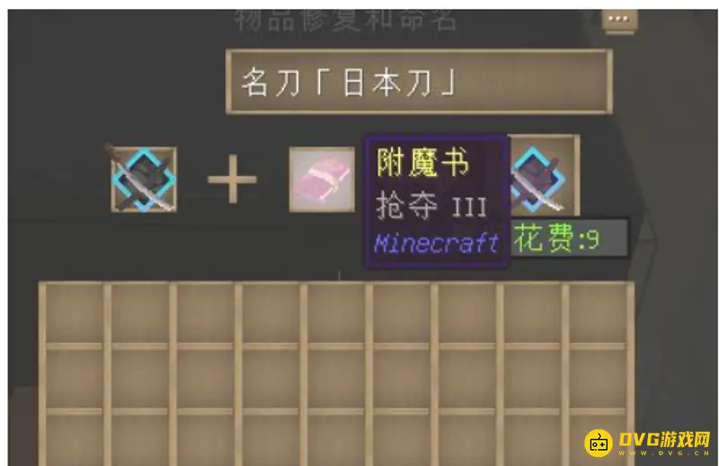 4、第四步是最关键的一步,需要给利刀「无名」红玉附魔,必须是锋利附魔书,至于是锋利Ⅰ、Ⅱ、Ⅲ、Ⅳ、Ⅴ都无所谓。