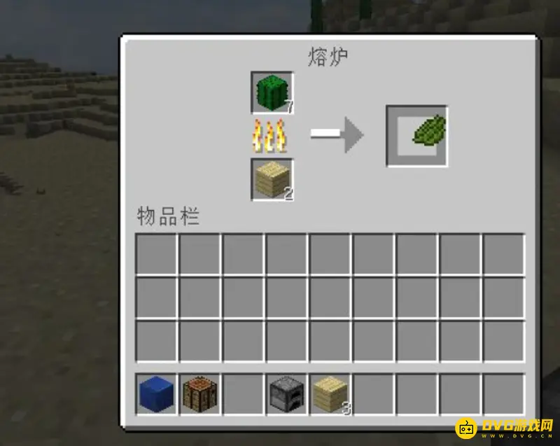1、进入游戏中,拿出准备好的仙人掌,将其放到熔炉里面进行烧制得到仙人掌绿。