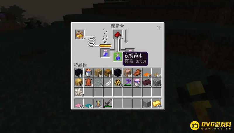 与红石粉酿造就可以变成8分钟的夜视药水了。