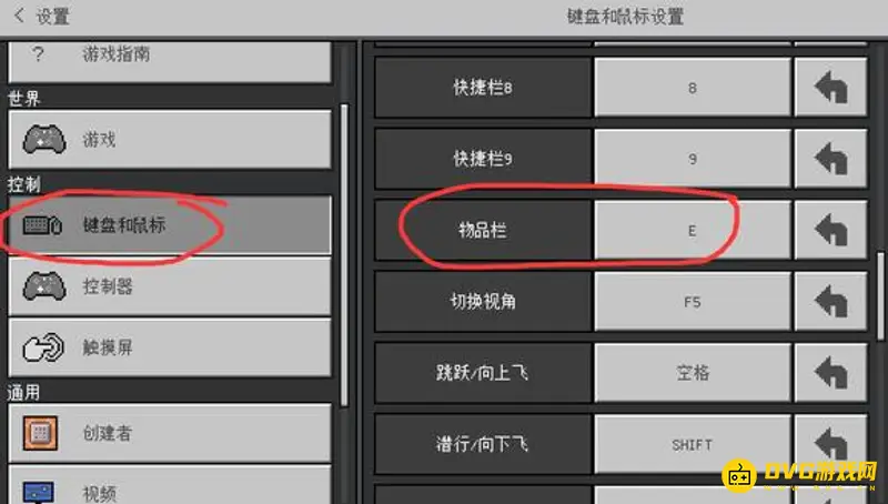 二、点击左侧键盘和鼠标,就可以看见打开物品栏的按键为E了,如下图所示。