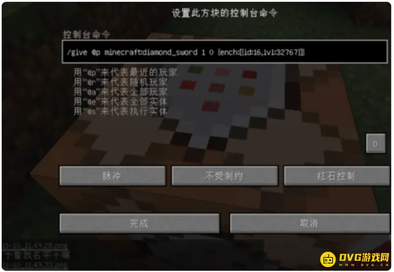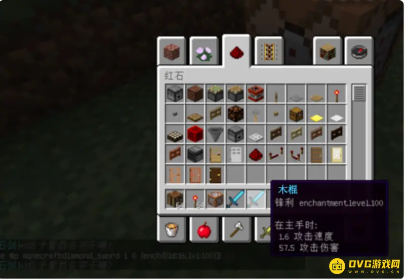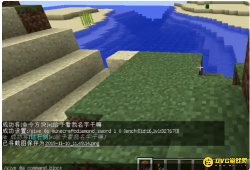 4、接着输入"/give @p minecraft:diamond_sword 1 0 {ench:[{id:16,lvl:100}]}"。