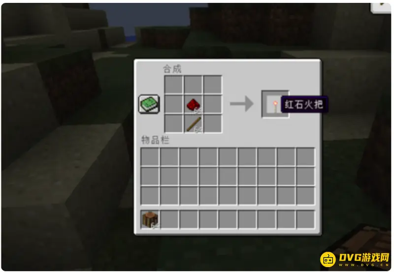 1、首先先用工作台摆放合成红石火把。具体方法如下图所示: