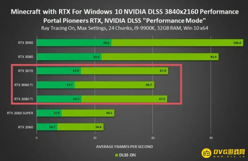 60帧。《我的世界:光追版》支持 DLSS ,打开这一选项可以使帧率翻倍。《我的世界:光追版》开启 DLSS 后,RTX 3060 Ti 以上显卡已经可以达到 4K 60fps 表现。