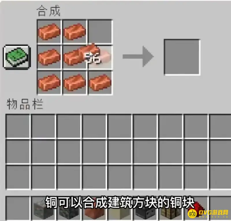 铜可以用于避雷针、望远镜、头盔、胸甲、护腿和靴子等物品的合成,用熔炉或者高炉烧炼铜矿石可以得到铜锭。除此之外,铜还会氧化生锈,生锈的第二、三阶段的外表颜色可以用于拼色系建筑。