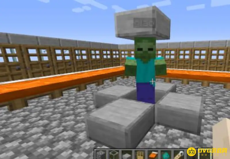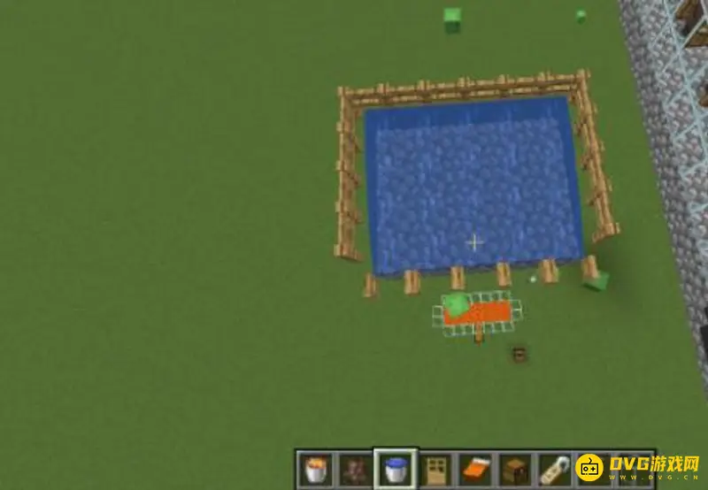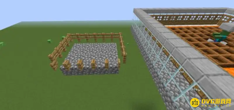 9、在这个平台外围放上栅栏,留出一条边不放。