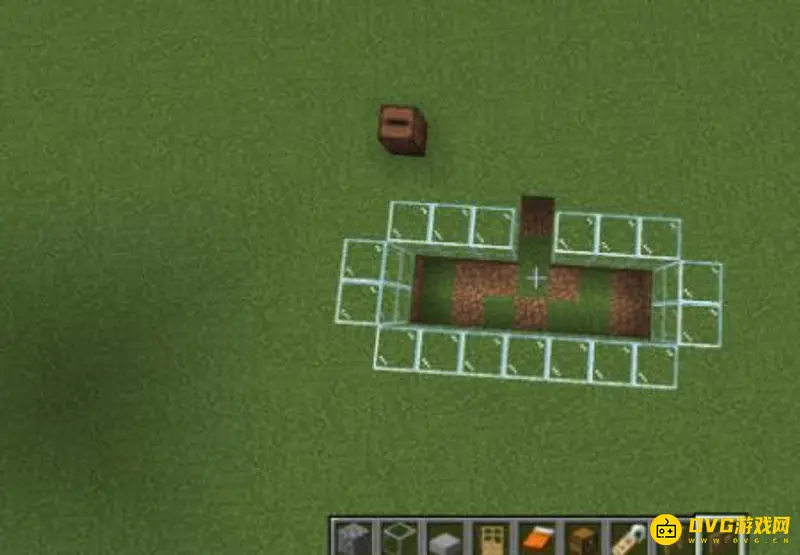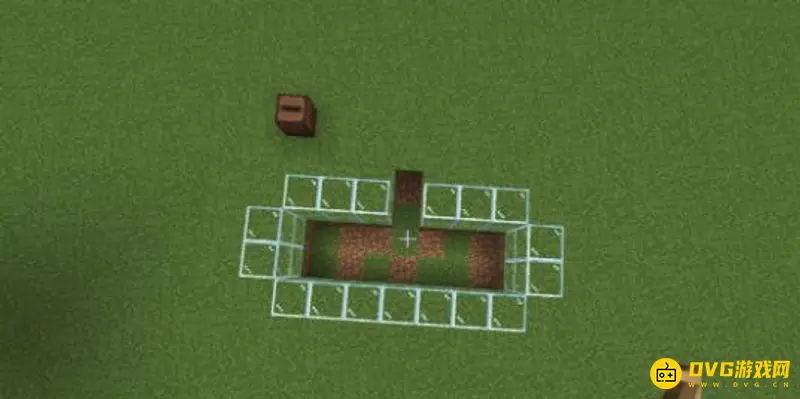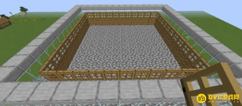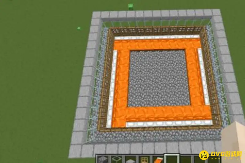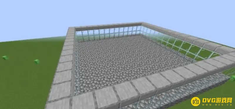 2、然后,在这个正方形平台的最外围,围上两格高的方块做围墙,建议用玻璃比较容易观察到内部情况。