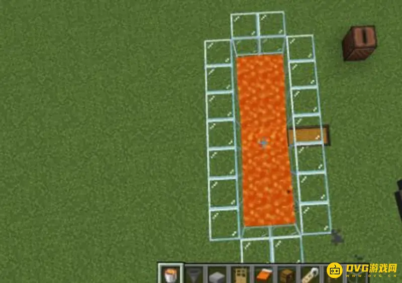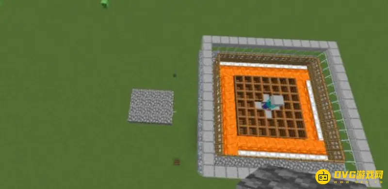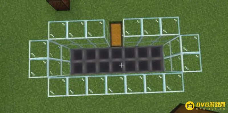 3、在这外围的玻璃上都放上台阶,这样可以避免铁傀儡刷新在玻璃的上面。