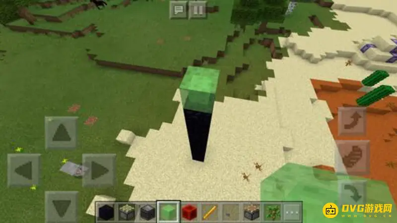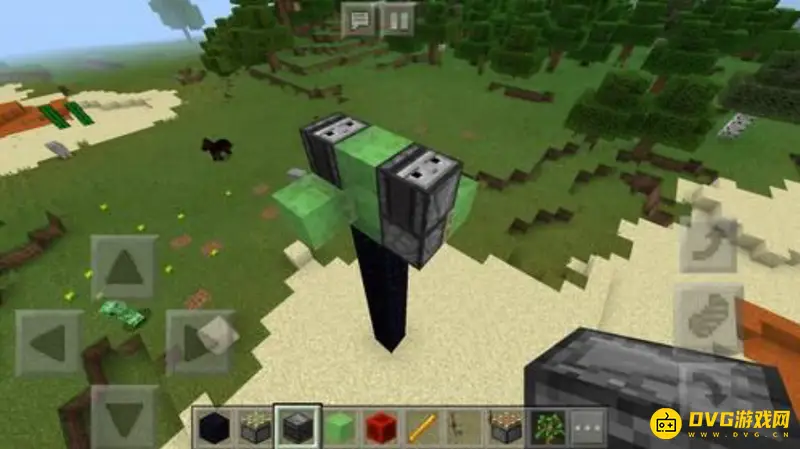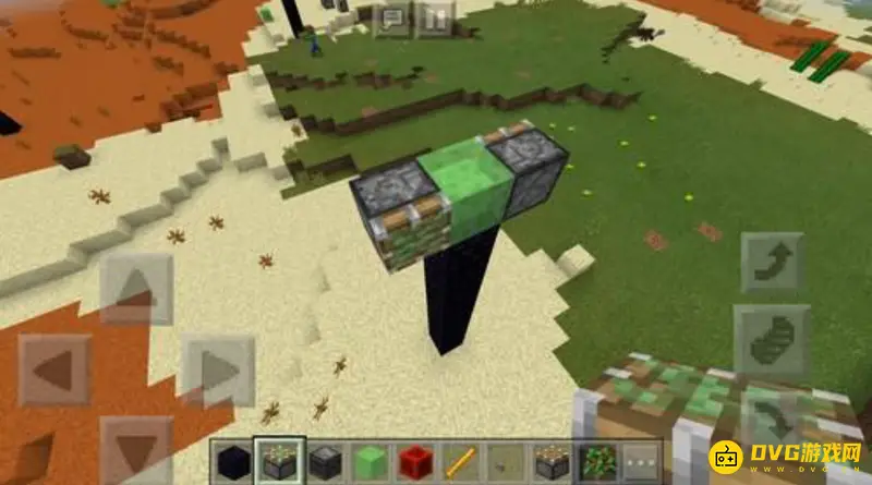 1、我们最先找到一个空旷的地方,然后用黑曜石搭建一个支柱。如下图所示: