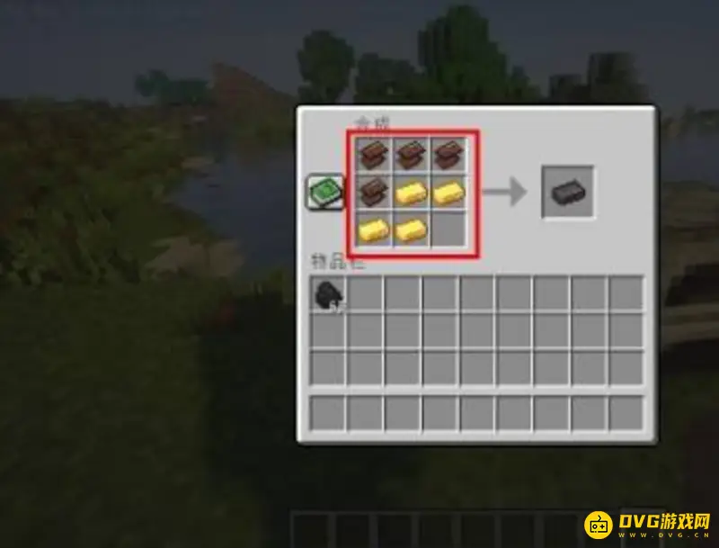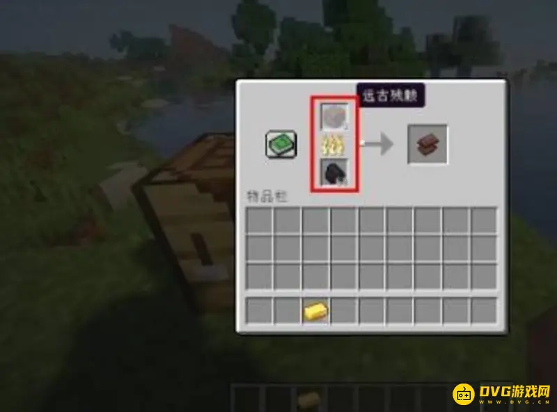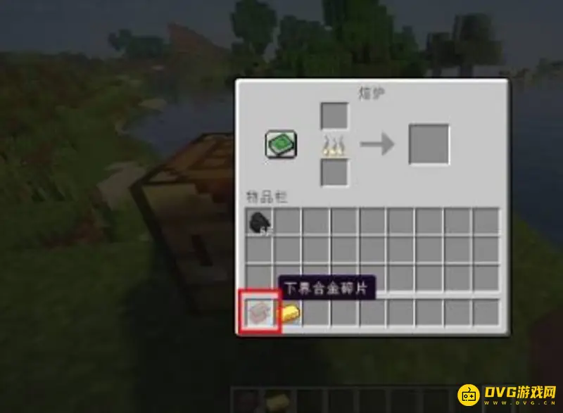 1.首先,先在地上放置好工作台和熔炉,物品栏准备好4个“远古残骸”、4个“金锭”和“煤炭”若干个。