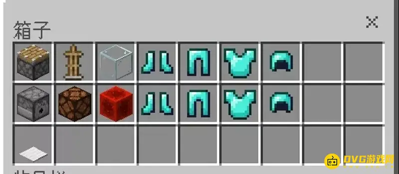 1、准备活塞、红石块、玻璃、盔甲架、发射器、压力板、任意防具、红石灯。