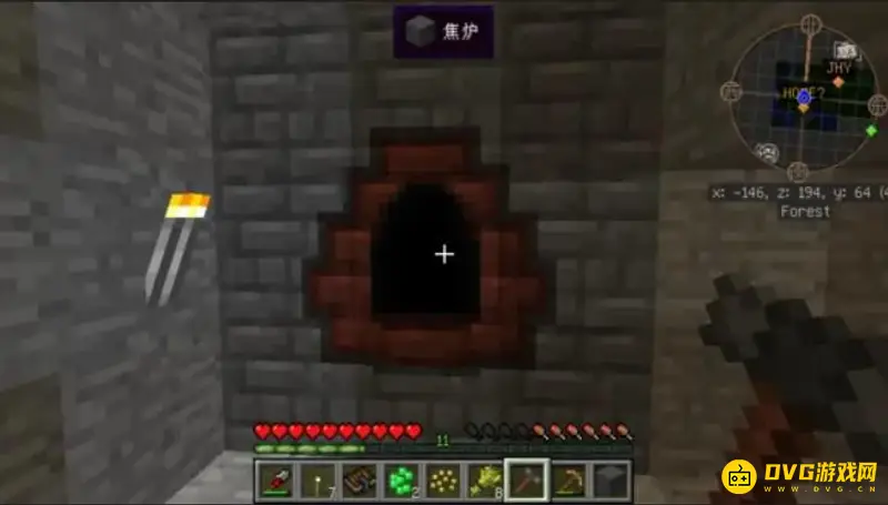 6.右击打开焦炉的界面,将木头或者煤炭放进去,然后等待焦炉的烧制。