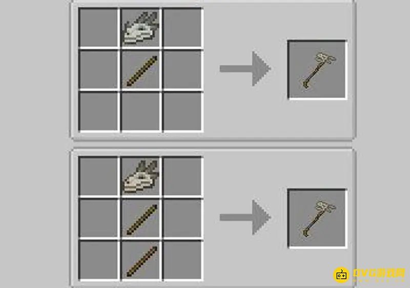 1.我们首先需要一条驯服了的小龙。然后我们分别做出三样物品,驯龙杖(上方为冰龙头骨,下方为火龙)。