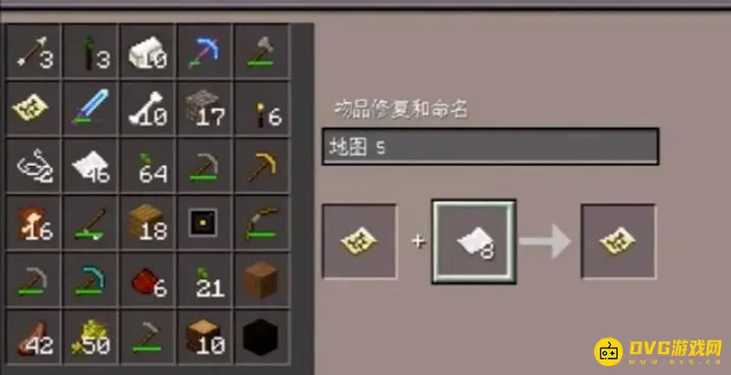 3、当我们放好地图之后,接着我们再在左边的材料中找到纸张,找到后我们需要在第二个格子里边放入八张纸,如下图所示:
