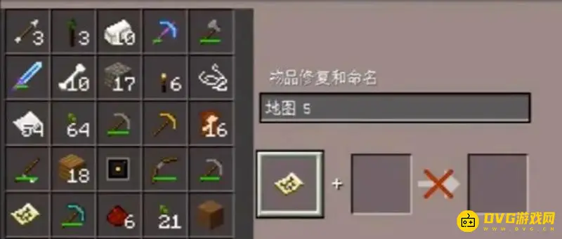 2、当我们打开游戏中的铁毡窗口之后,我们需要在左边的材料栏里找到“地图”,也就是我们现有的地图,然后放在第一个格子内,如下图所示: