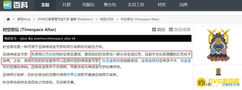 神奇宝贝中的祭坛全称为时空祭坛,需要使用红色锁链将时空祭坛激活,激活后的时空祭坛一部分会变成红色,且前方会出现画圈的红色粒子效果。之后,使用对应的时空宝珠可以召唤对应的神话宝可梦。