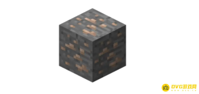 铁矿石是上面有点像橙色的斑点的石头的样子,如下图所示,铁矿所在:地下,如果房子向下延伸的,那么只要你把矿洞向下挖10格周围就必然有铁矿。