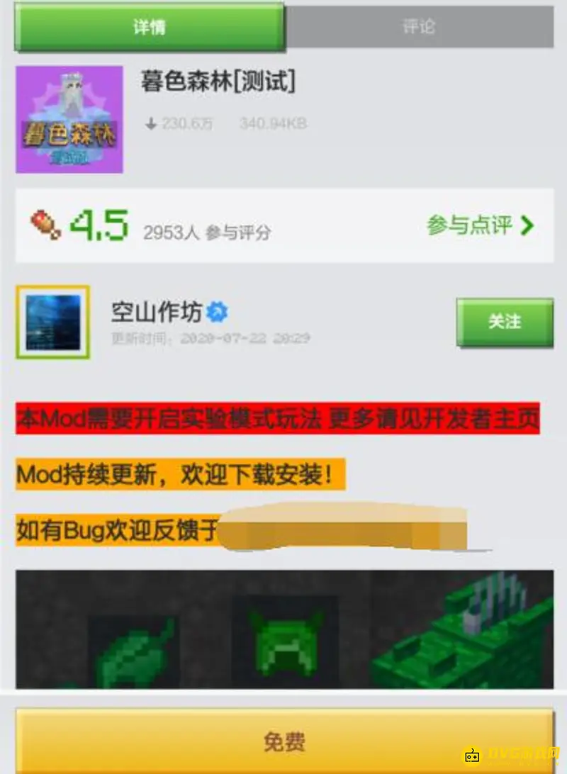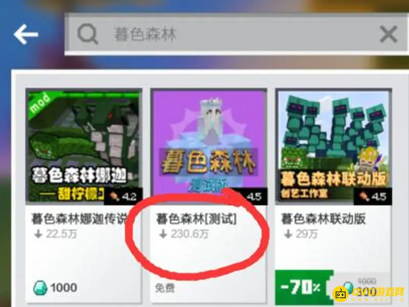1,我们可以去资源中心搜索暮色森林,然后点击下方的模组。