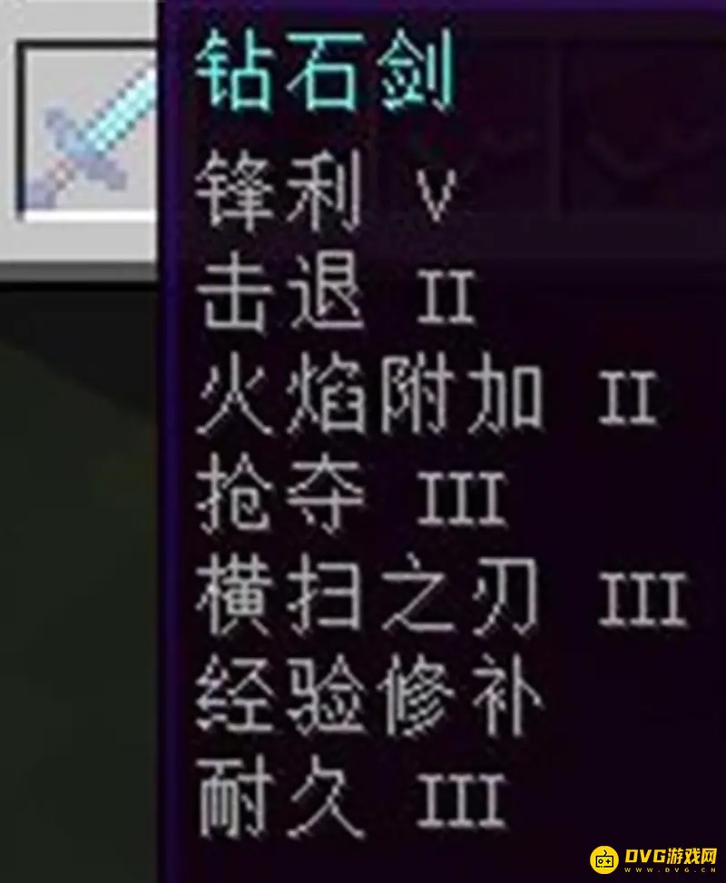 2、剑:锋利、击退、火焰附加、抢夺、横扫之刃、经验修补、耐久。