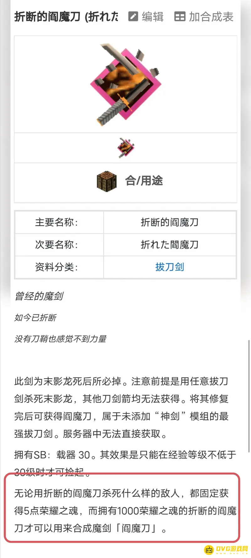 用折断的阎魔刀去杀怪物,获得1000荣耀之魂即可修复。无论用折断的阎魔刀杀死什么样的敌人,都固定获得5点荣耀之魂,而拥有1000荣耀之魂的折断的阎魔刀才可以用来合成魔剑「阎魔刀」。