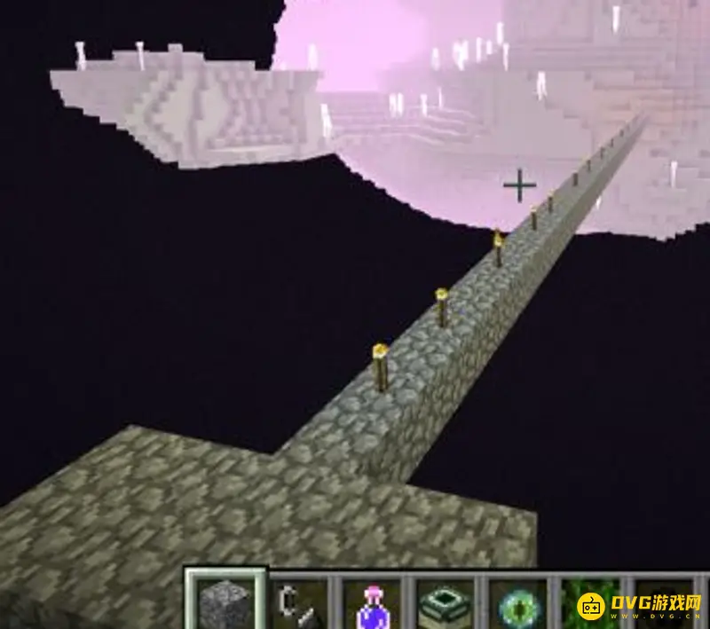 2.选一个末地边缘的地方,往外搭。并搭一个平台。
