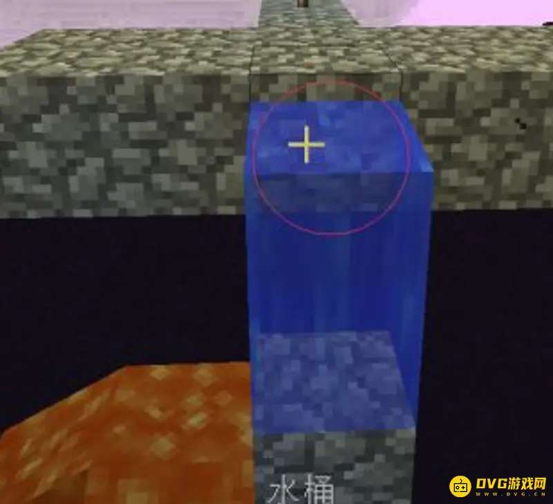 3.在平台边缘的一格放上岩浆,等2秒钟之后,收回岩浆,再在刚才放岩浆的旁边一格放上水,这时可以看到,下面形成了石柱,等石柱形成好之后,收回水。当然这种方法总有一些空缺的地方,补一下就好了。