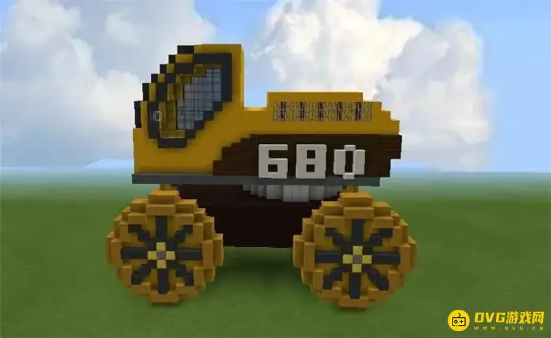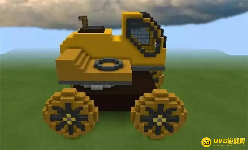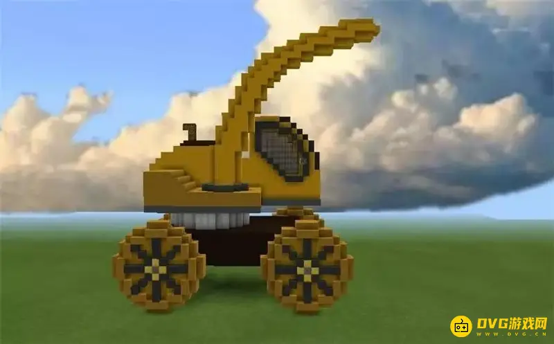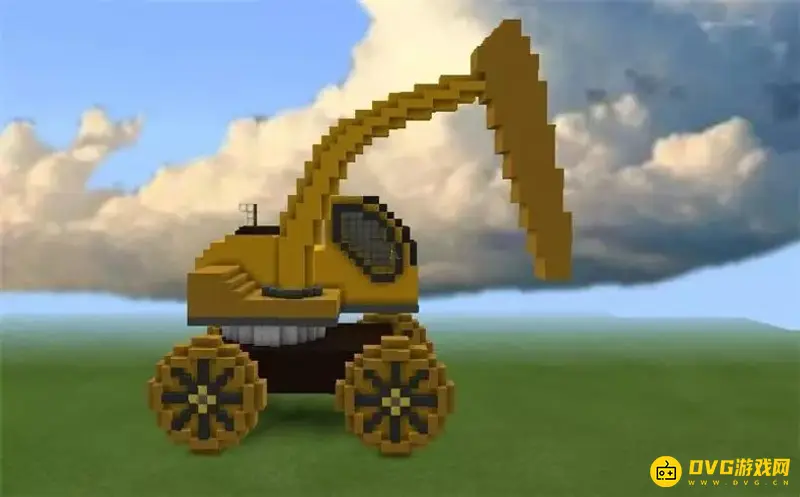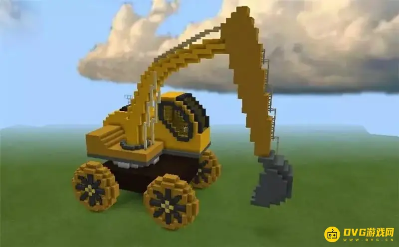 挖掘机可以用灰色混凝土、玻璃、各种方块等材料制作