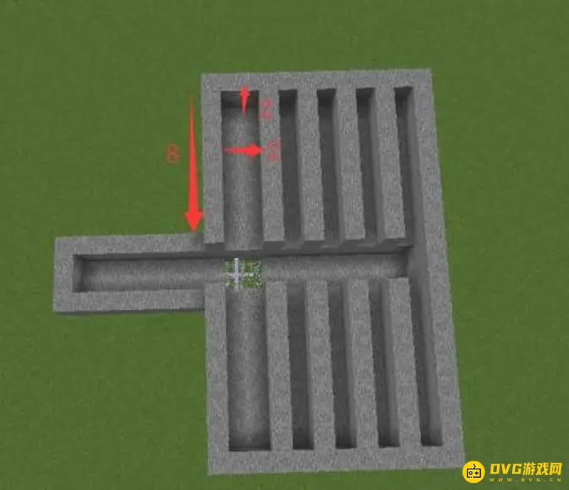 2.然后我们从这个高度向外扩展两格,并且再向前延伸出8格。