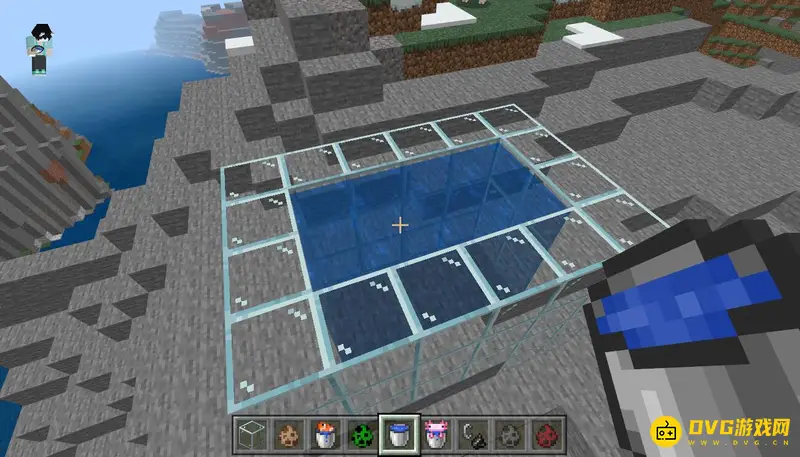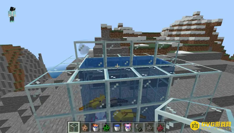 1,首先我们可以用玻璃做一个鱼缸,把四周往上围几层。