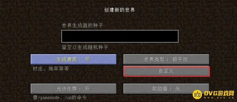 2.然后再点击世界类型,直到出现超平坦这个世界类型,然后按下面的自定义。