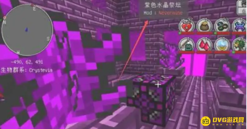 2.走进祭坛,可发现里面有很多紫色晶体砖块,即紫水晶方块。