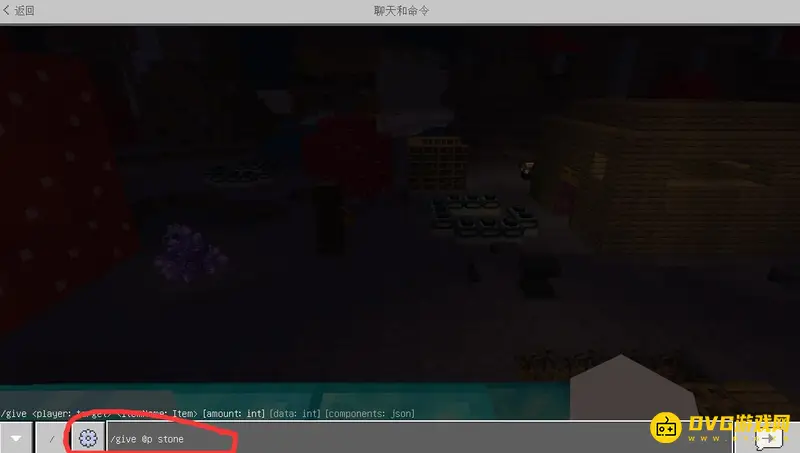 1,首先我们打开聊天框,输入指令/give @p,再加上石头的英文名tone。