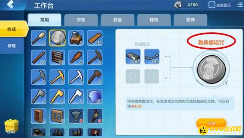 美杜莎被封印期间对诅咒的气息十分敏感,我们可以持有雅典娜诅咒,在雪原或冰川的古代战场触碰纪念碑来召唤美杜莎。雅典娜诅咒在工作台中消耗铁锭6个、灵魂锁链6个就可以制作出来。