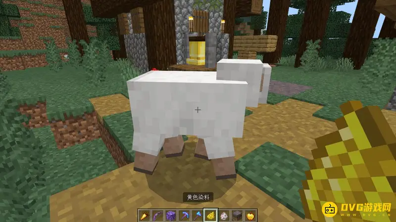 1,首先我们需要找到一只羊,然后我们选择我们想给它染色的染料右键点击羊。