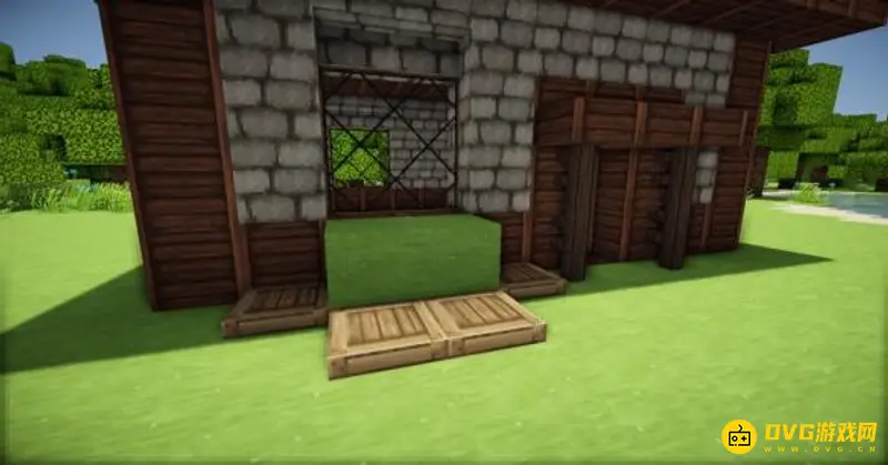 17、在草方块的四个面上装上活板门。