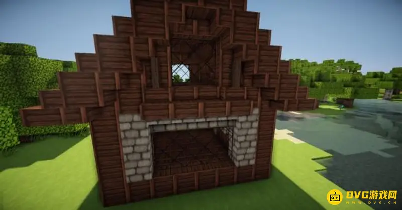 9、门框的上面放上木台阶下面再接两格栅栏。