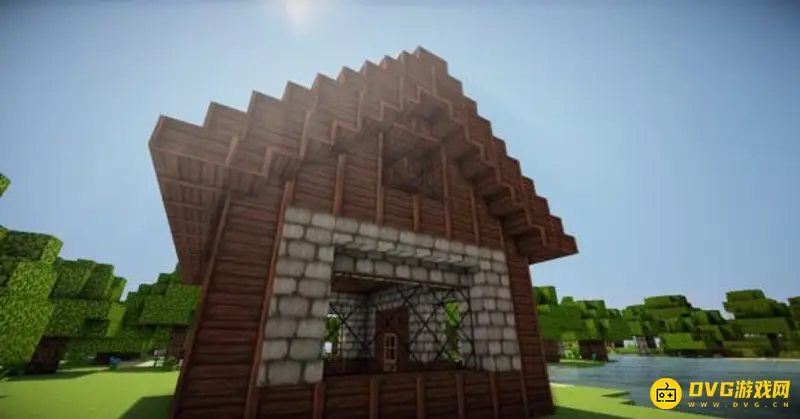 15、屋子里加一根柱子然后铺上梯子。
