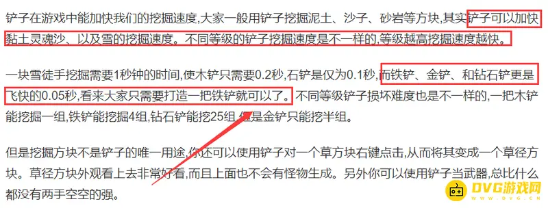 在我的世界中铲子可以加快黏土灵魂沙和雪的挖掘速度,不同等级的铲子挖掘速度也是不一样的,等级越高挖掘速度越快。