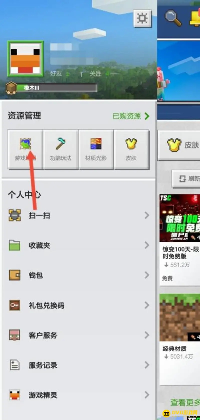 1.我们进入我的世界页面,首先点击下面的资源中心。
