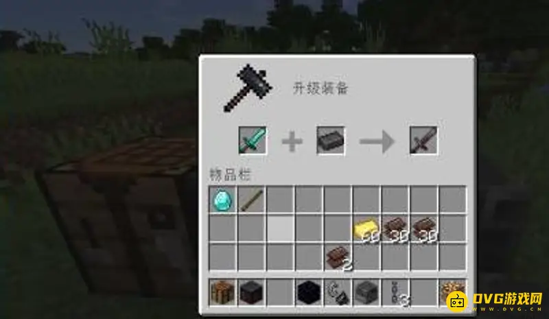 下界合金剑制作方法:钻石剑和下界合金碎锭在锻造台合成。