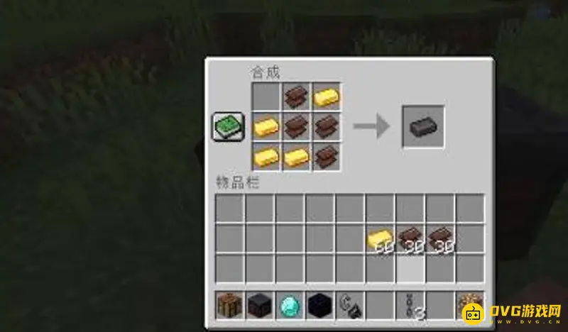 2、然后在工作台中,将下界合金碎片和金锭合成下界合金锭,钻石和木棍合成钻石剑。