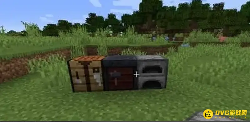 1、把工作台、锻造台以及高炉放在地上,在高炉中将远古残骸烧成下界合金碎片。