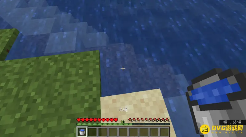 2、然后前往河边,对着水点击鼠标右键即可,可以看到此时的桶已经变为了水桶。