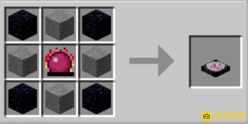 4、最后将“黑曜石”放入四个拐角,我的世界在创造模式怎么找转换桌中间放入“贤者之石”,“石头”放入剩下的格子里即可。